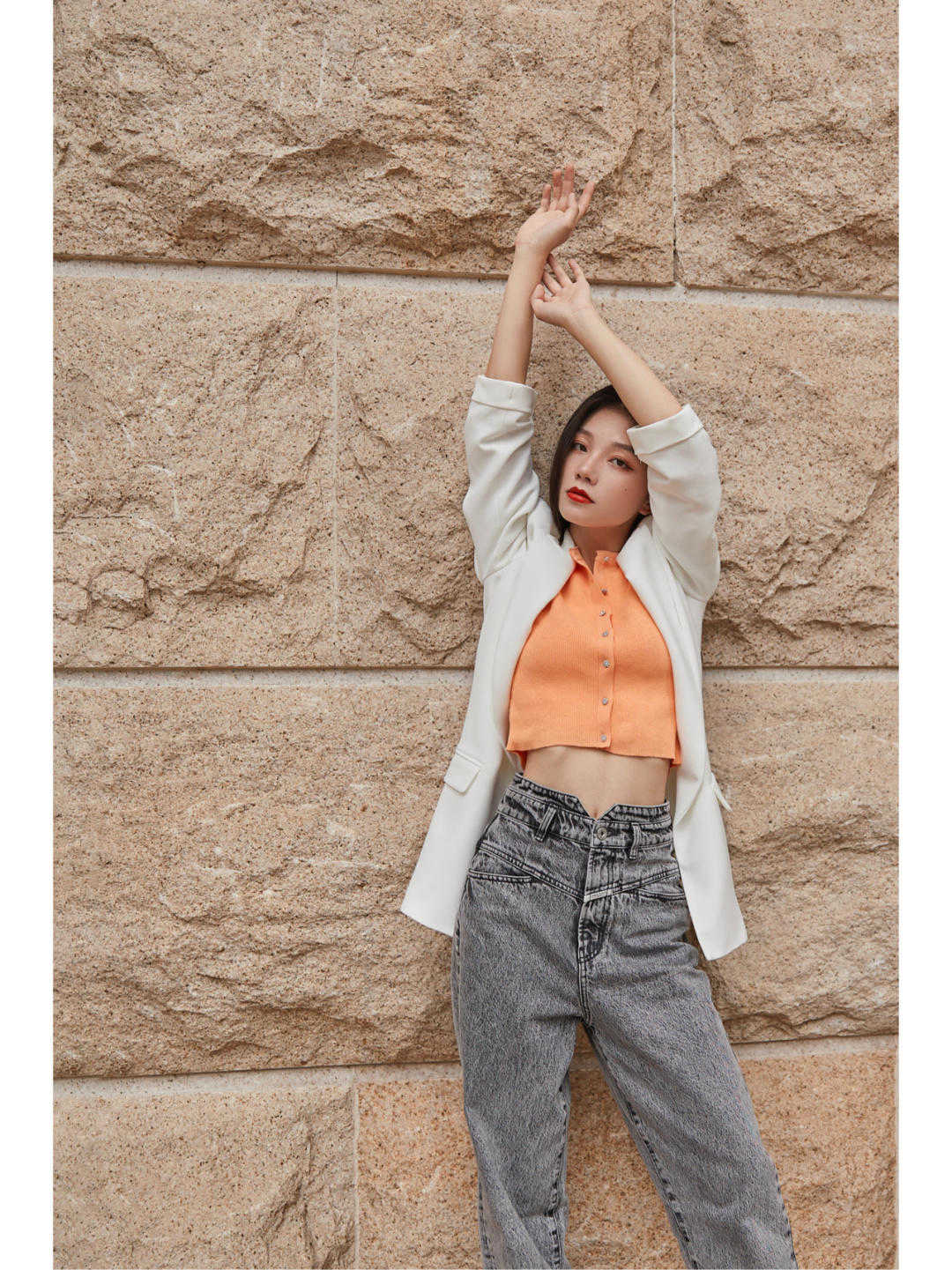 搭配的上衣也要搭配一些非常适合的款式,特别是非常温柔的针织衫,颜色也可以跨大颜色一点,针织衫就会显得很温柔,也可以选择针织衫,也可以再搭配一个西服外套,西服外套又宽松又能保暖,特别适合秋天这样忽冷忽热的天气中。