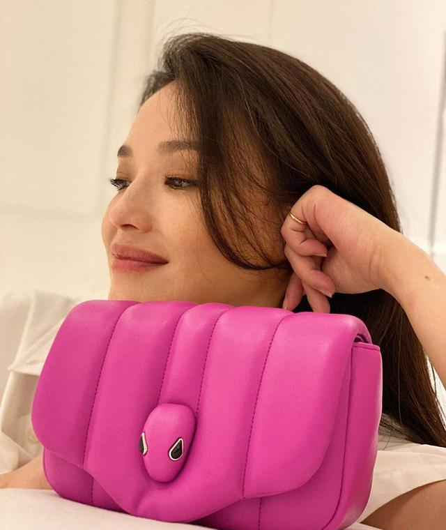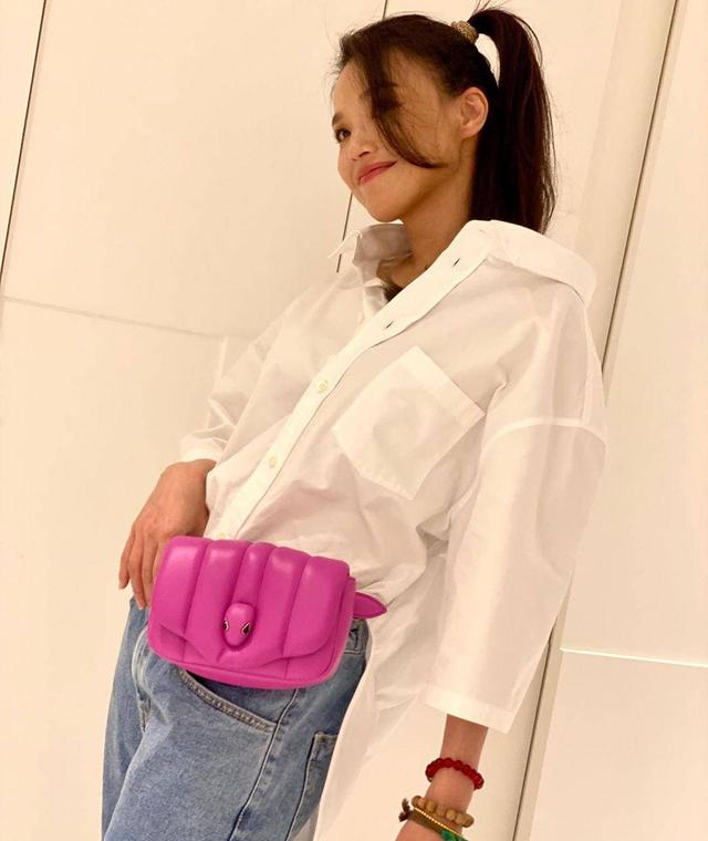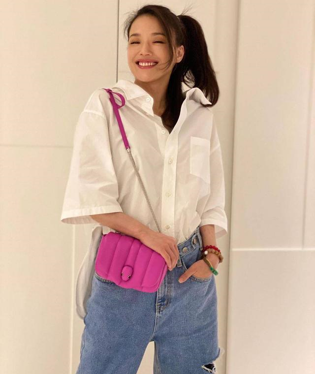 舒淇这笑容也太有感染力了吧,阳光大笑的样子让人无法忽视她的魅力,竟然就连被不少人诟病的大嘴也彰显着阳光性感。身上背一件玫红色的斜挎包,点缀一身白衬衫加牛仔裤的单调,让一身穿搭有了重点,再随意地在手上戴几串串珠,佛性又随意,整个人少女感十足。