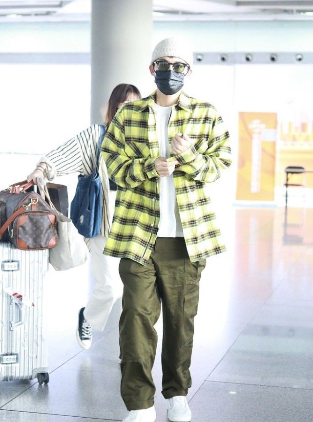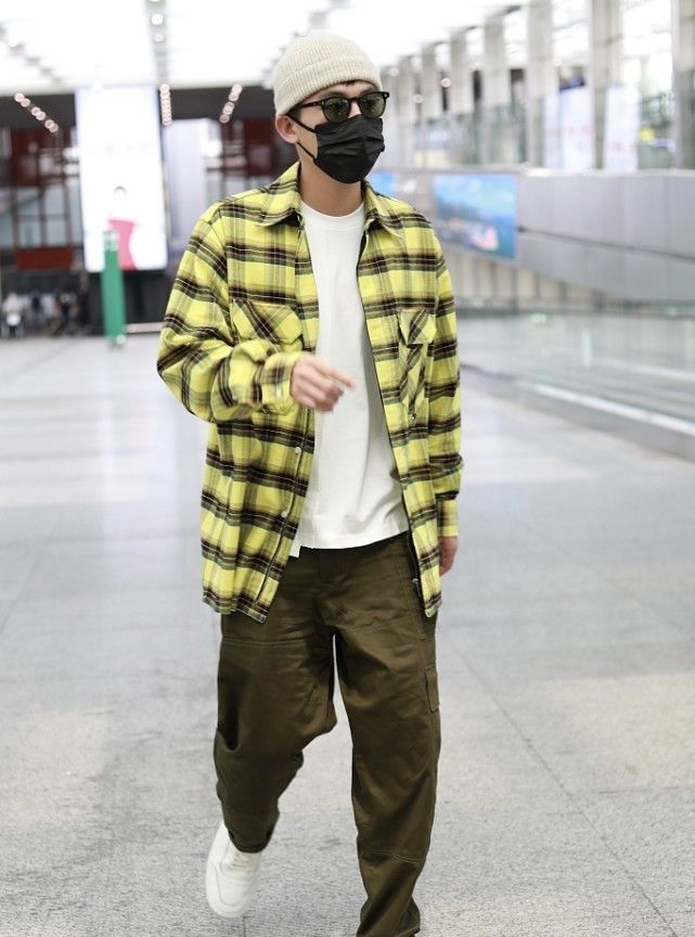 大家对于格子衬衫并不陌生,但是很多人会选择一些保守配色,避免单品过于亮眼而让造型变得浮夸。而欧豪恰恰相反,他选择了荧光黄格子配色,让整身搭配的色彩都得到了提亮,同时更添几分张扬感。