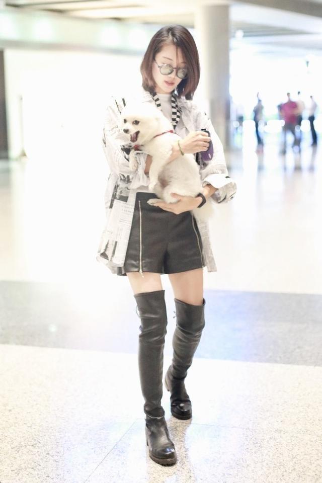 下装苗苗搭配了一件酷炫十足的皮质短裤,这就很方便她凹造型,皮质面料具有一定的轻熟感,与皮质长筒靴相呼应,看起来和谐又自然,带有一定的光泽度,还能露出你笔直纤长的双腿,大家可以借鉴一下“下衣失踪”的穿法,这样会打造出更完美的身材比例。