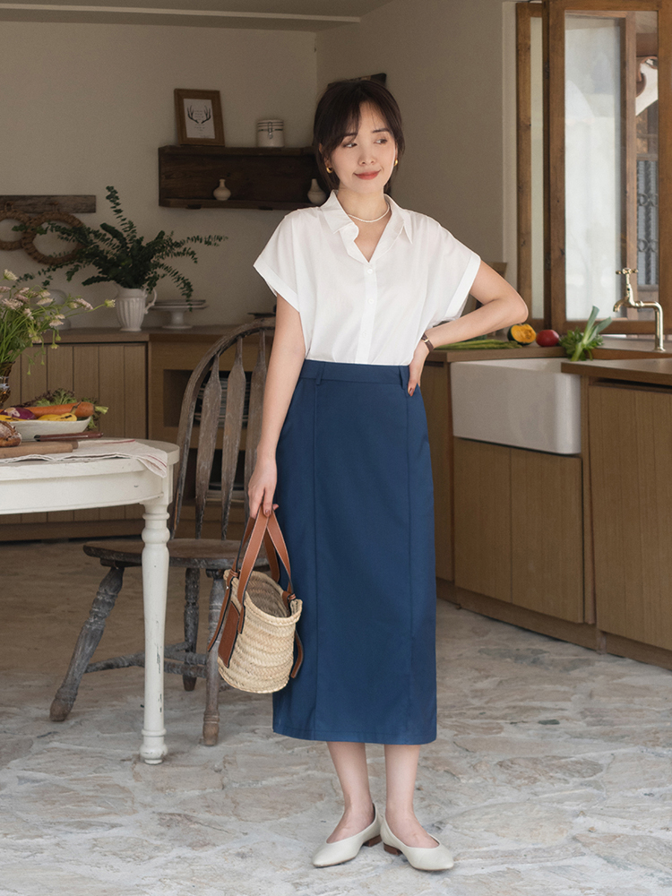 白色的衬衫简约知性,利落时髦,也是日常生活当中非常常见的一种单品,作为日常穿搭的话,可以借鉴下面的穿搭造型,连肩的设计,对于肩膀和背部的线条具有一定的修饰效果,又能保证露肤度,清爽舒适,减缓衬衫自带的严肃感,多了一份随性和慵懒的气息。