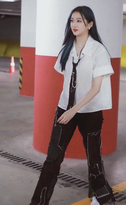 关晓彤最新路透造型,衬衫搭配领带是酷飒的高校学姐没错了