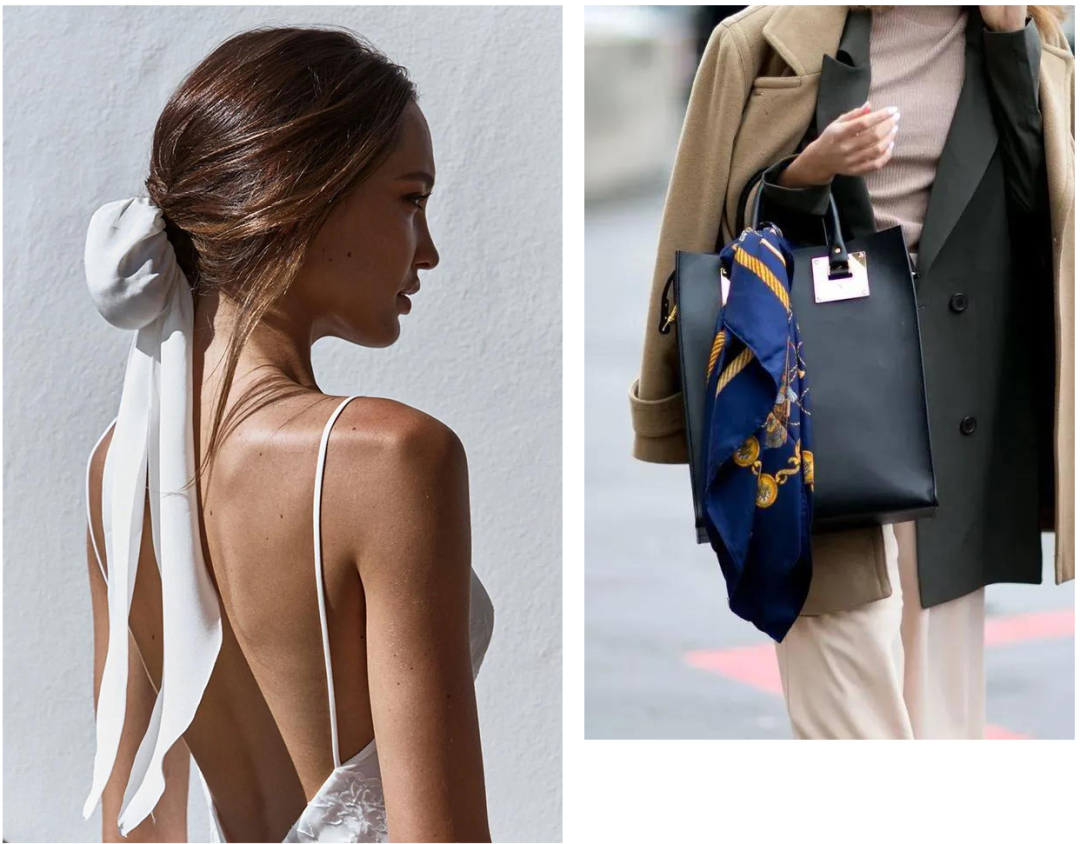 3.当饰品:发带、包包装饰,总之,丝巾就是个“多功能”的东西。