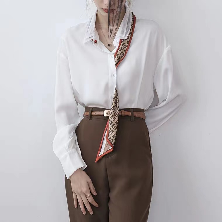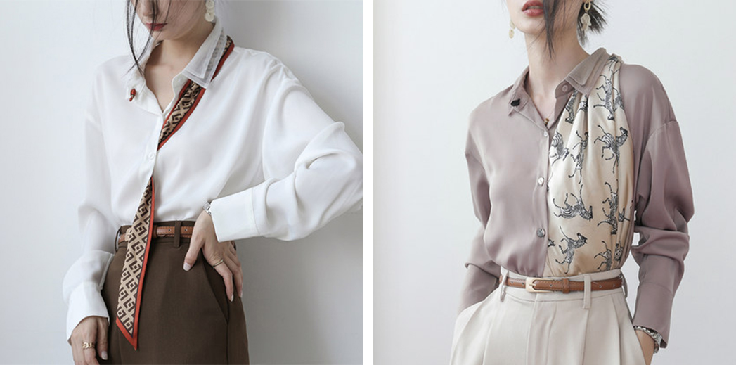 1.系在衣领上:叠穿、绑带、领结,甚至扎进皮带里……衬衫有了丝巾的点缀,那简直是完美。